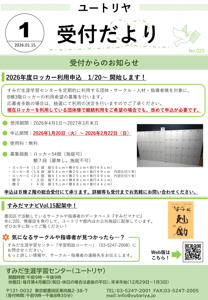 受付だより2026年1月号(2026.1.15発行) NEW!