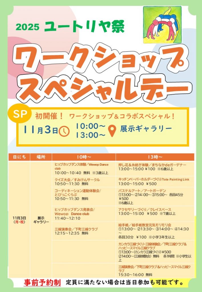 ユートリヤ祭にて初開催の「ワークショップスペシャルデー」。