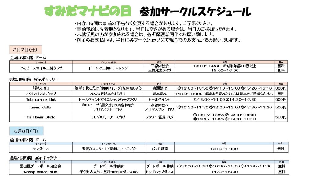3月7日(土)、3月8日(日)に「すみだマナビの日」を開催します!
