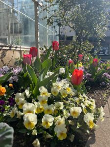 ユートリヤ中庭のコンテナガーデンや外周の植栽は、まちなかガーデナー講座受講生とボランティア庭部のメンバーがプランを考え実践、お手入れをしています。